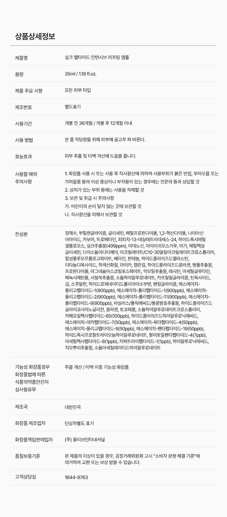 | 화장품제조업자, 화장품책임판매업자 및 맞춤형화장품판매업자 | 상품 상세페이지 참조 | 제조국 | 상품 상세페이지 참조 |