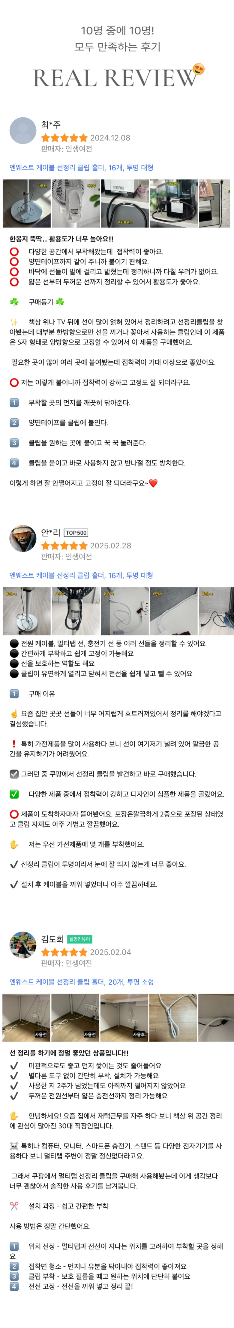 동일한 상품에 대해 작성된 상품 리뷰로, 판매자는 다를 수 있습니다.
