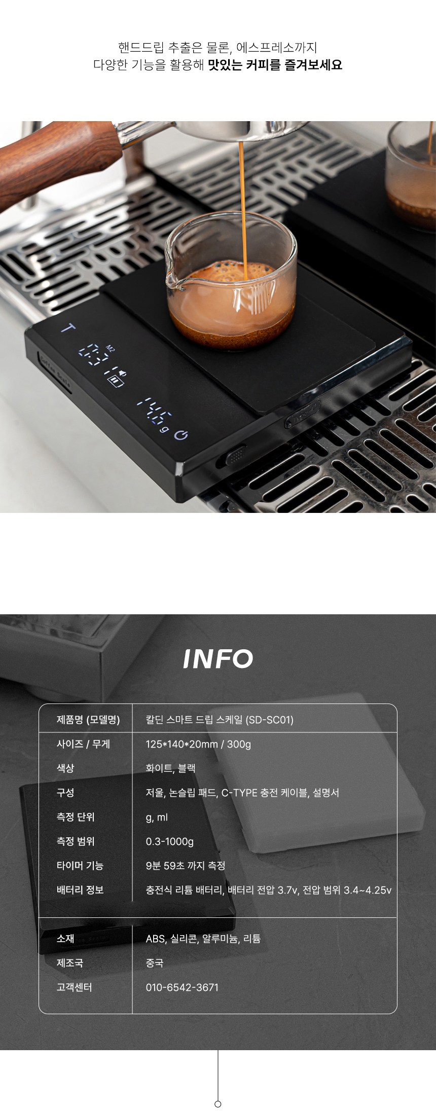 | 품명 및 모델명 | 칼딘 스마트 드립 스케일 / SD-SC01 | 인증/허가 사항 | 본품: 해당없음 / 전지: YU101450-21001B |
