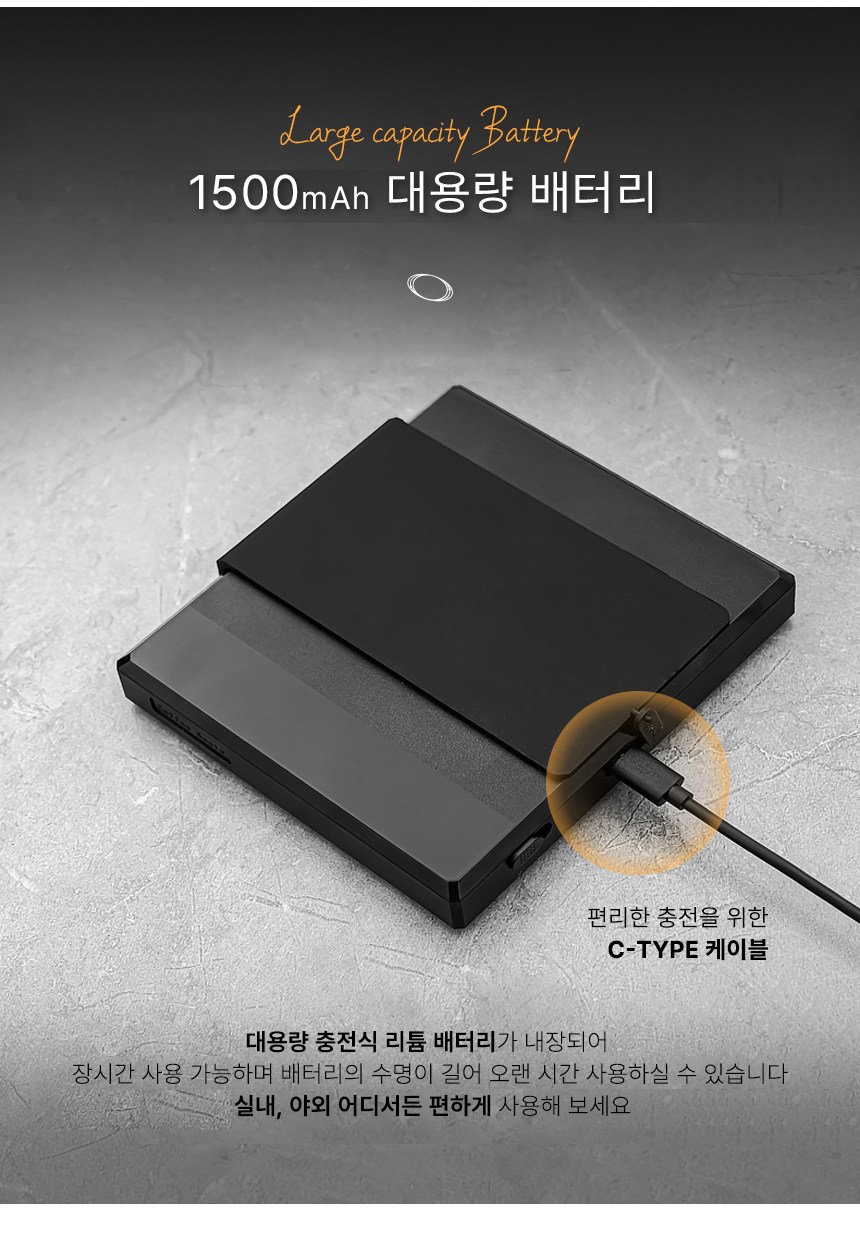 - 전원공급방식: USB 충전식