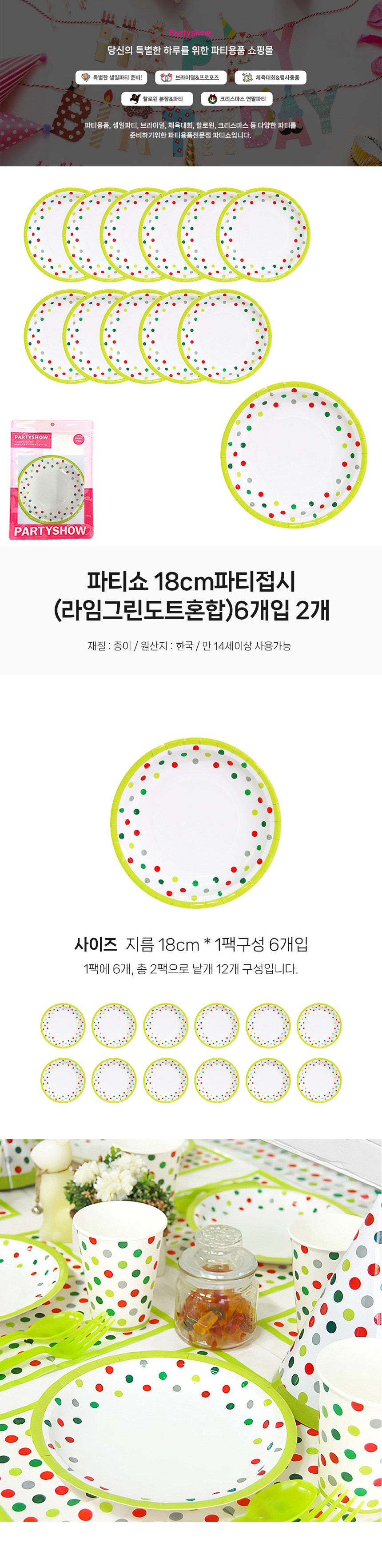 | 품명 및 모델명 | 파티쇼 파티 접시 라임그린도트혼합 18cm | 재질 | 지류 |