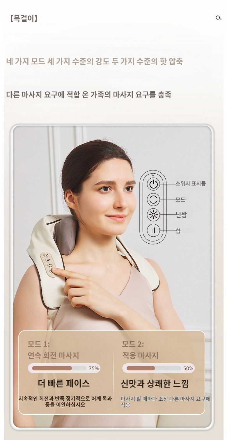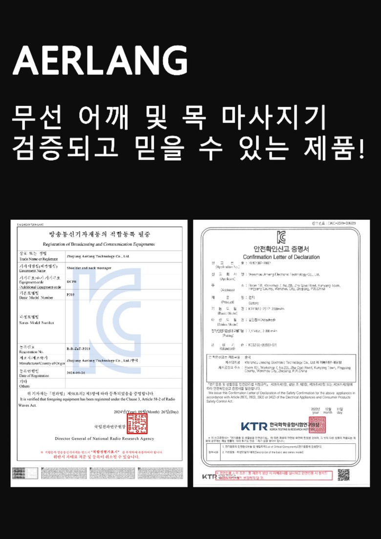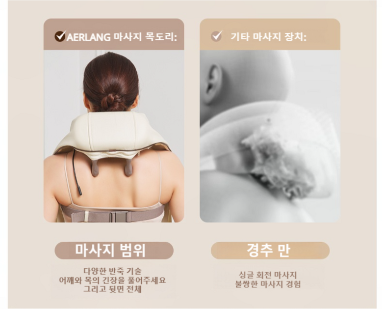AERLANG 웨어러블 무선 목 및 어깨 마사지기 저소음 강력한 진동 마사지 기능 온열 어깨 및 목 마사지기