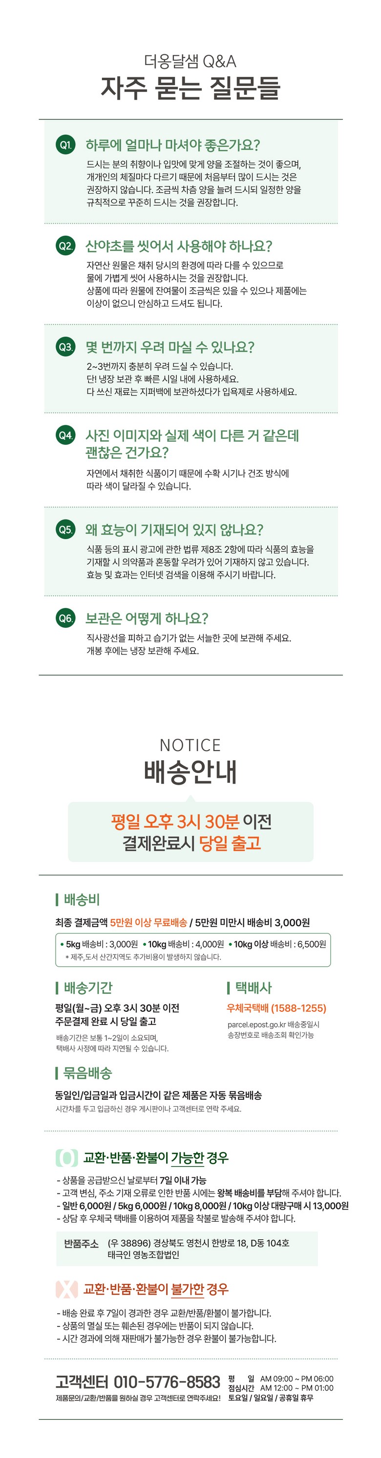 - ㆍ모니터 해상도의 차이로 인해 색상이나 이미지가 실제와 달라, 고객이 단순 변심으로 교환/반품을 무료로 요청하는 경우