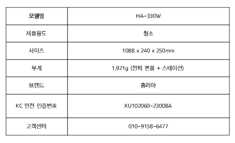 | 품명 및 모델명 | HA-330W | KC 인증정보 | 전파인증 : R-R-DOr-Homelia-220bl, 배터리: XU102060-23008A, 어댑터: HU10590-18011E,, R-R-GQH-GQ18-300062-AK |