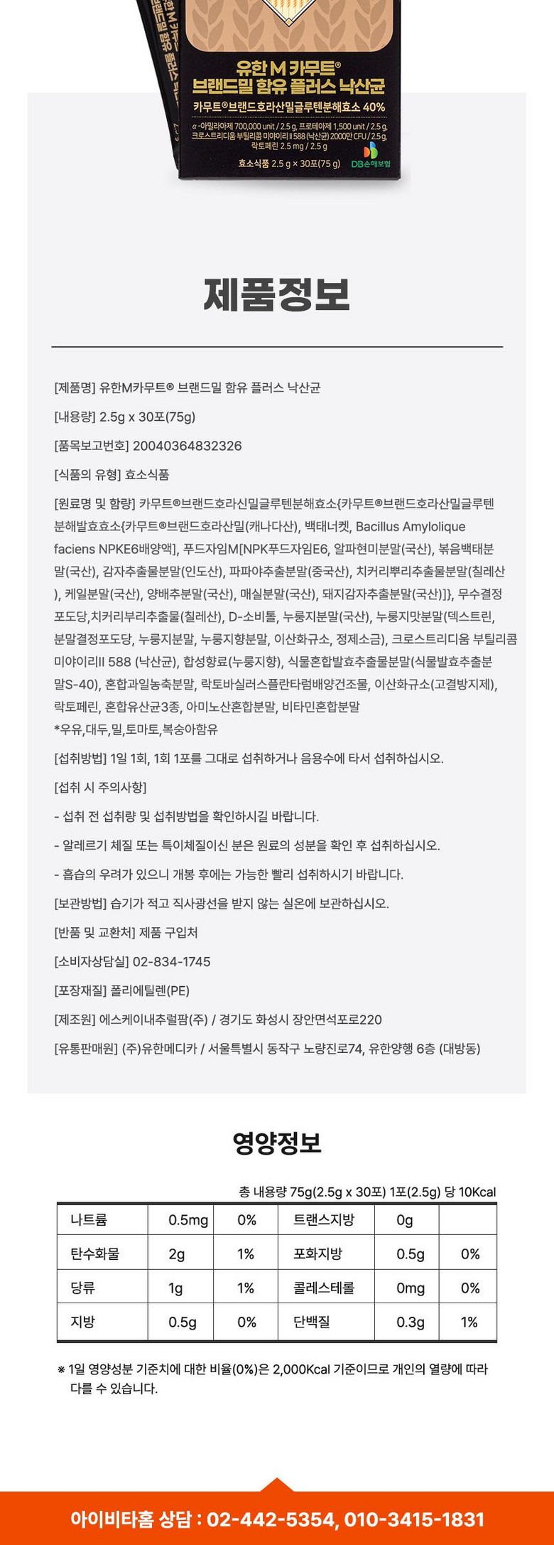 | 원료명 및 함량 | 상품 상세페이지 참조 | 영양정보 | 상품 상세페이지 참조 |