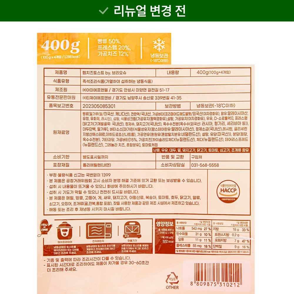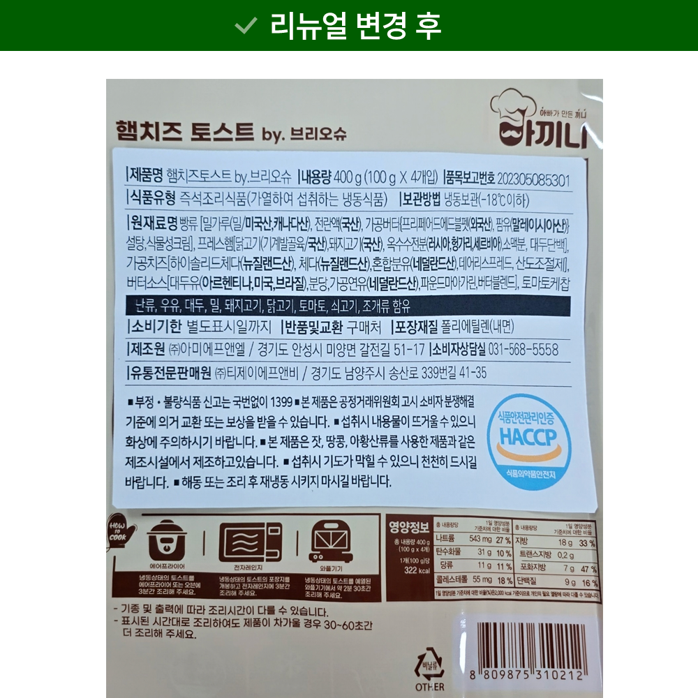 | 생산자 및 소재지 | 컨텐츠 참조 | 제조연월일, 소비기한 또는 품질유지기한 | 업데이트 예정 |