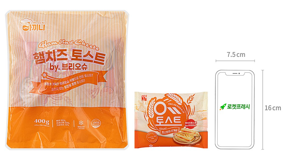 브리오슈 빵으로 만들어 부드러운 풍미가 돋보이는 햄치즈 토스트예요. 한입 베어 물면, 짭조름하면서도 고소한 감칠맛이 가득 퍼지지요. 끝부분을 밀봉한 형태로, 속 재료를 흘리지 않고 깔끔하게 먹을 수 있어요. 전자레인지나 에어프라이어로 간편하게 조리해 맛있는 간식으로 즐겨보세요.