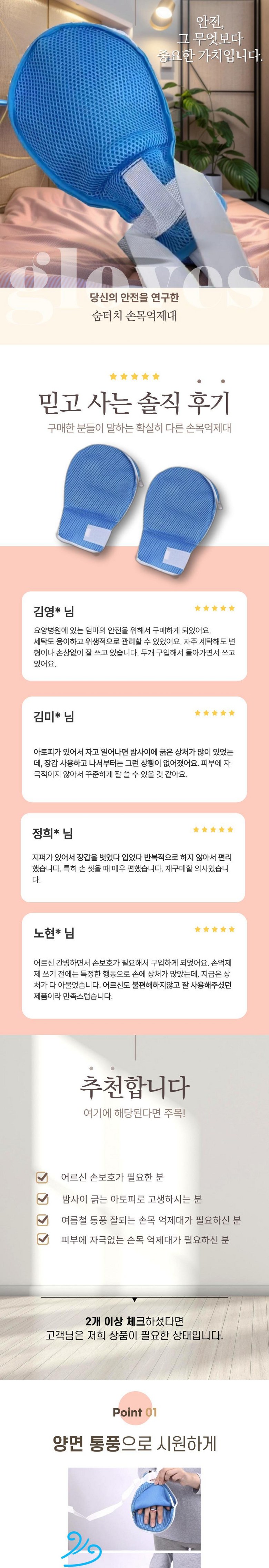 숨터치 손목 억제대 치매 아토피 장갑