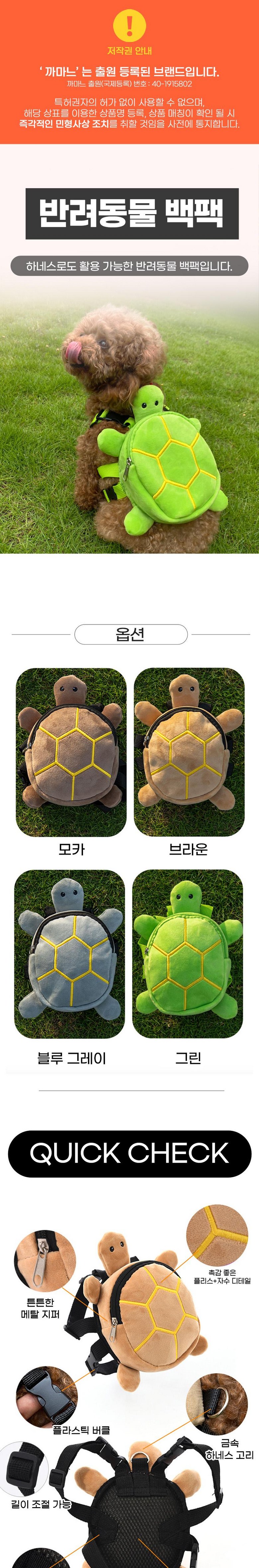 웨이비데이즈 반려동물 테토 터틀 백팩 하네스