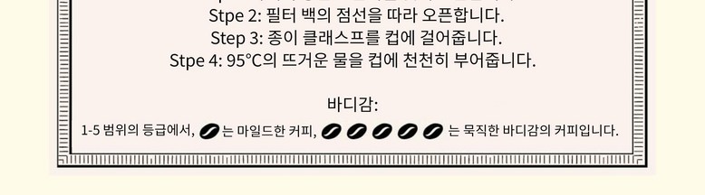 상단부의 슬릿을 오른쪽에서부터 뜯어 점선을 따라 필터백을 엽니다. 종이로 된 거는 부분을 컵에 걸고 95℃ 이상의 뜨거운 물을 천천히 붓습니다.