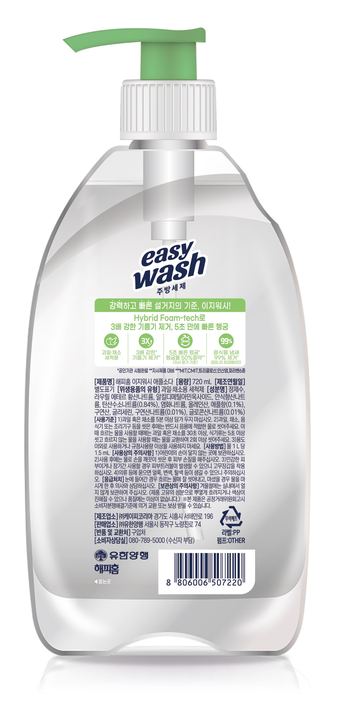 | 품명 및 모델명 | 해피홈 이지워시 애플소다 | 인증/허가 사항 | 위생용품 |