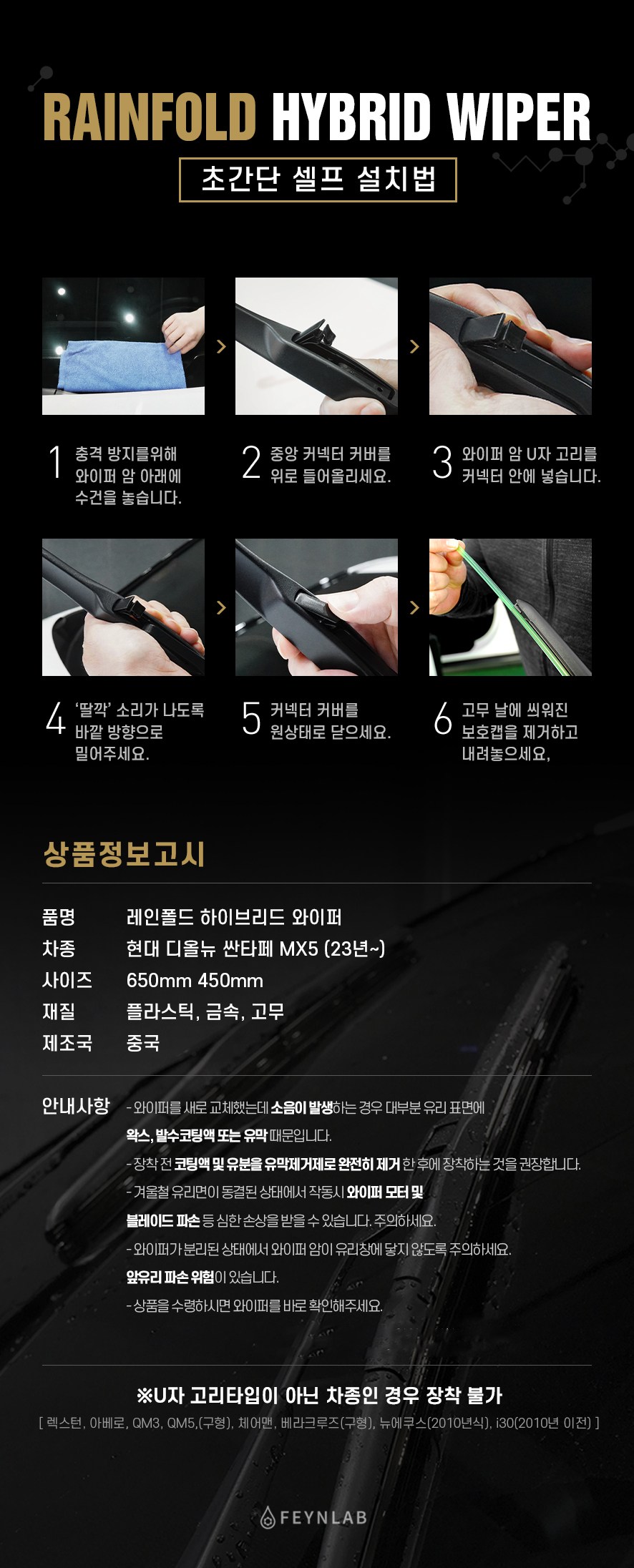 | 품명 및 모델명 | 레인폴드 현대 싼타페 하이브리드 와이퍼 | 동일모델 출시년월 | 2020년 10월 |