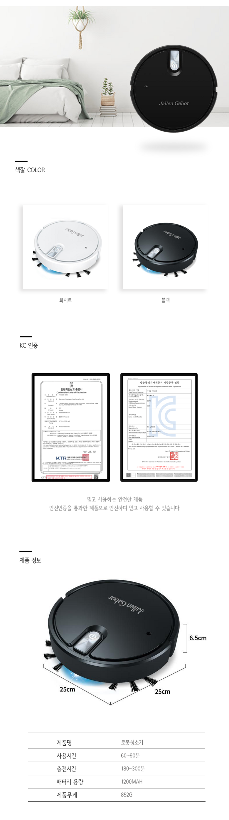 | 품명 및 모델명 | HU LULU 무선 스마트 로봇청소기 진공청소 물걸레 찜질 기능 USB충전 | KC 인증정보 | 상품 상세페이지 참조 |