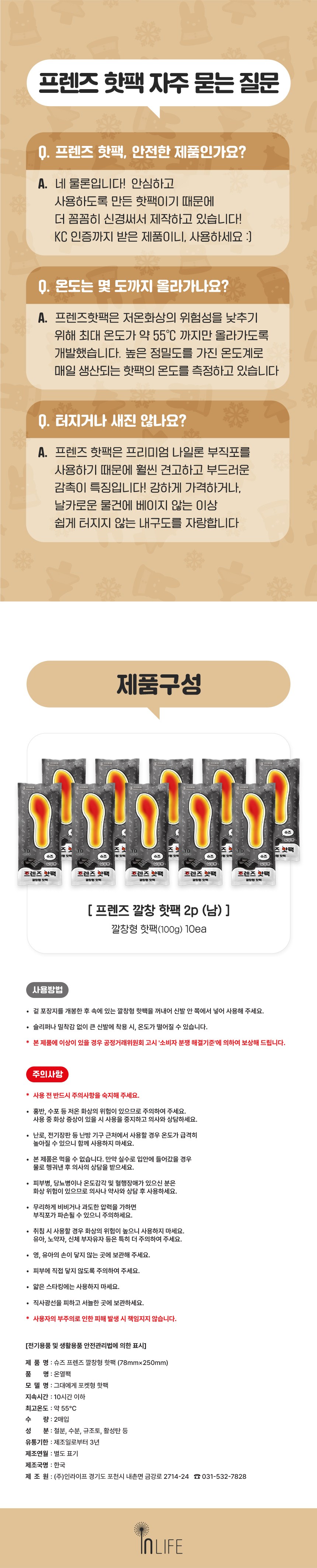 | 제조국(원산지) | 대한민국 | 제조자(수입자) | (주)인라이프 |