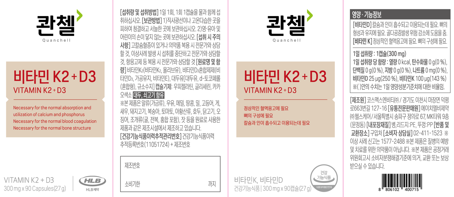 | 제품명 | 비타민 K2+D3 | 제조업소의 명칭과 소재지 | 컨텐츠 참조 |
