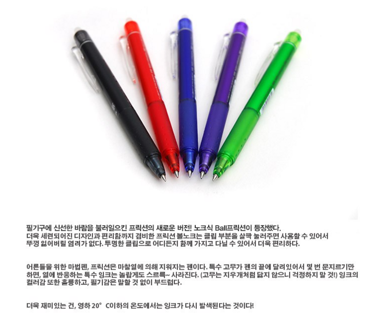 - 프릭션 볼펜 0.5mm 5자루 1세트 입니다. -