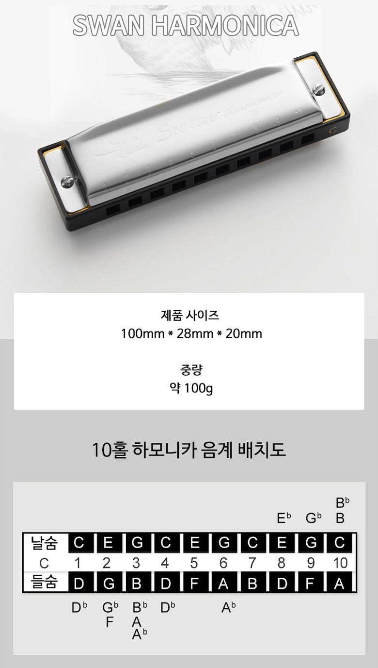 | 품명 및 모델명 | 와이든 SWAN 10홀 C조 입문용 하모니카 | 크기 | 컨텐츠참조 |