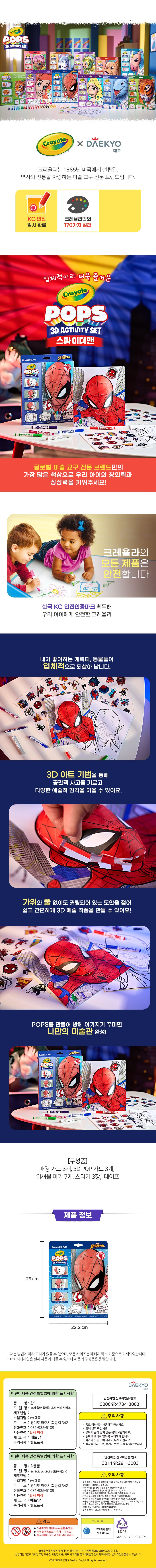 | 품명 및 모델명 | 크레욜라 팝스 스파이더맨 워셔블 마커 컬러링놀이 1개 7색 1개 7색 | KC 인증정보 | 컬러링 스티커북 :CB064R4734-3003, 전용마커: CB114R291-3003 |