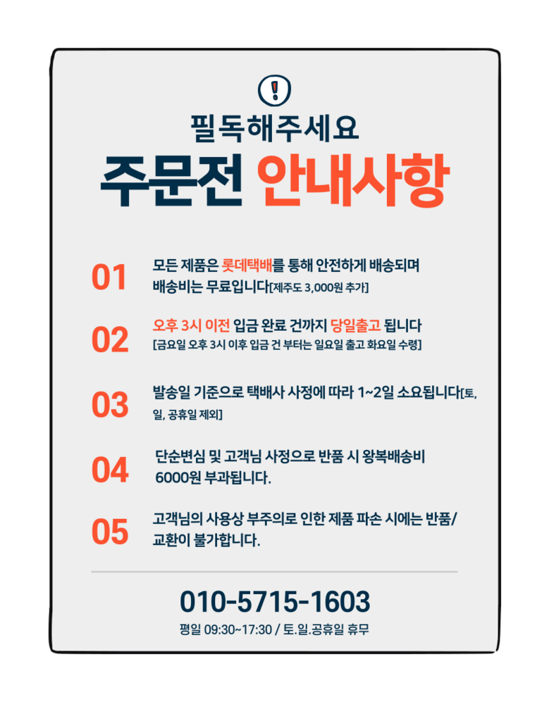 - ㆍ모니터 해상도의 차이로 인해 색상이나 이미지가 실제와 달라, 고객이 단순 변심으로 교환/반품을 무료로 요청하는 경우