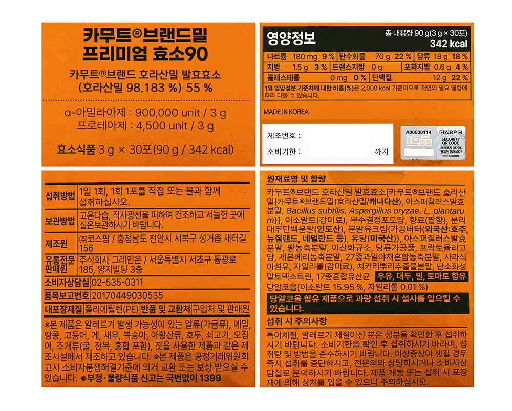 | 포장단위별 내용물의 용량(중량), 수량 | 90g x 5개 | 원재료명 및 함량 | 컨텐츠 참조 |