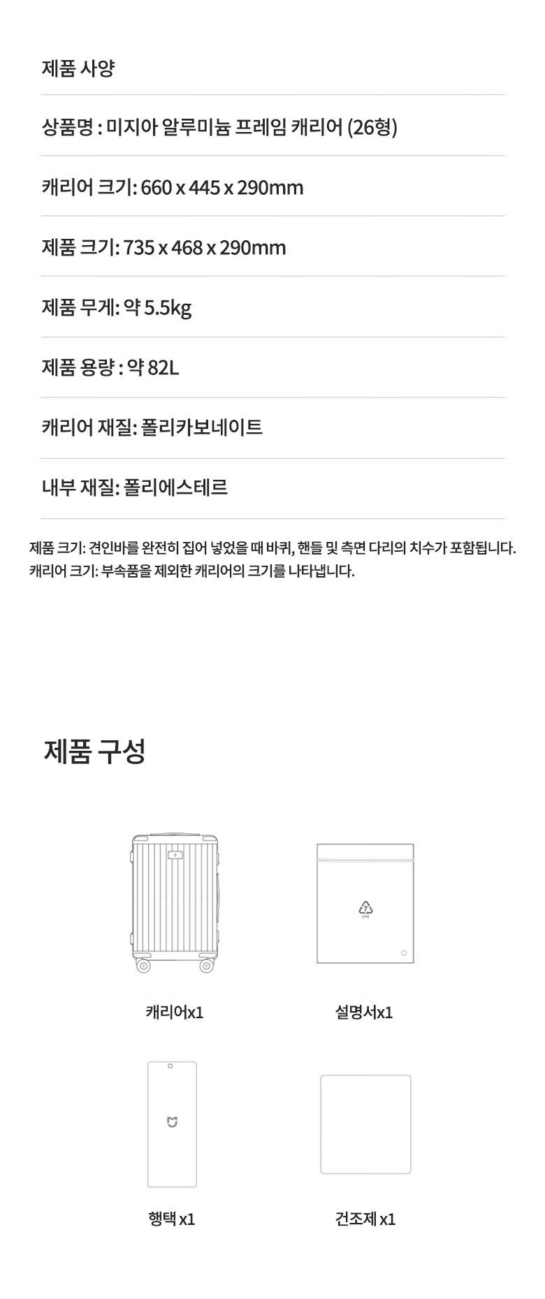 캐리어, 택, 설명서, 건조제