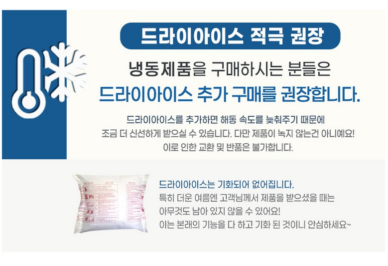 | 배송방법 | 신선/냉장/냉동 | 배송비 | 무료배송 · 도서산간 추가 배송비 - 제주 지역: 5,000원 - 도서산간 지역: 8,000원 |