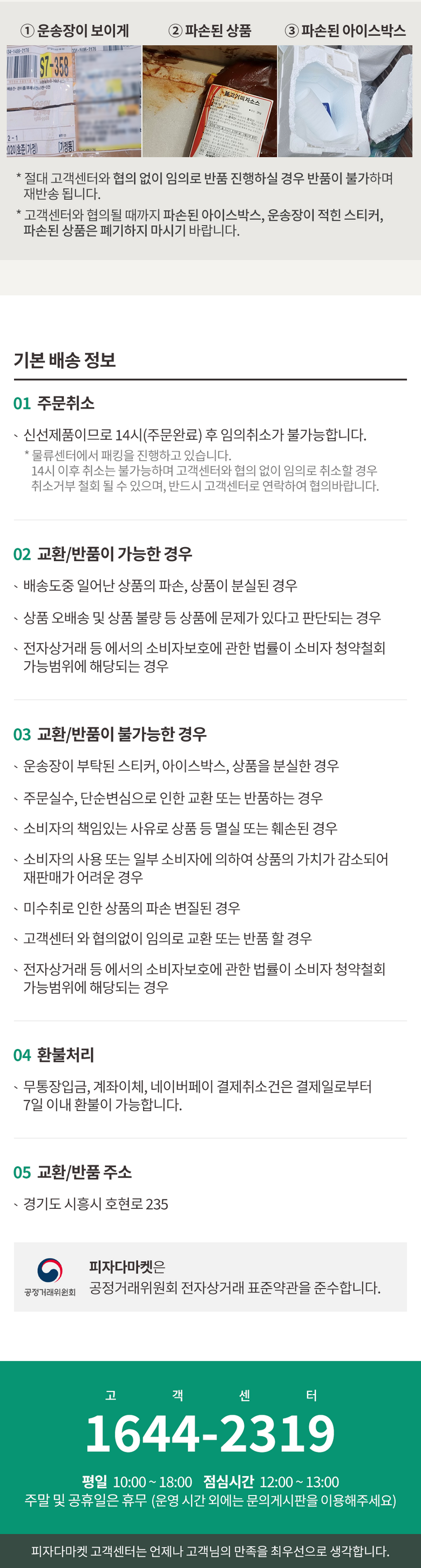 - ㆍ모니터 해상도의 차이로 인해 색상이나 이미지가 실제와 달라, 고객이 단순 변심으로 교환/반품을 무료로 요청하는 경우