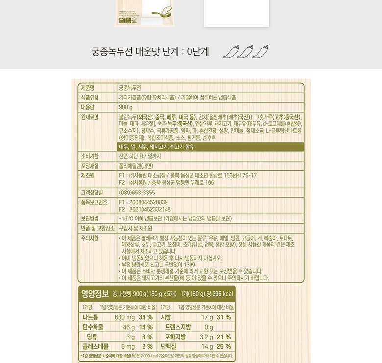 | 제품명 | 상품 상세페이지 참조 | 식품의 유형 | 상품 상세페이지 참조 |