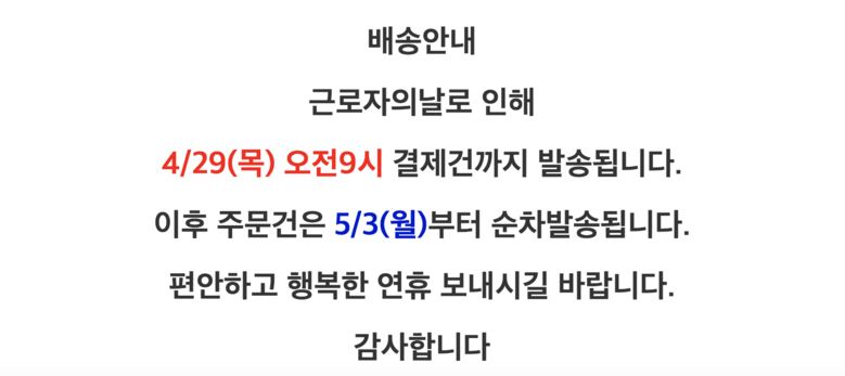 - ㆍ모니터 해상도의 차이로 인해 색상이나 이미지가 실제와 달라, 고객이 단순 변심으로 교환/반품을 무료로 요청하는 경우