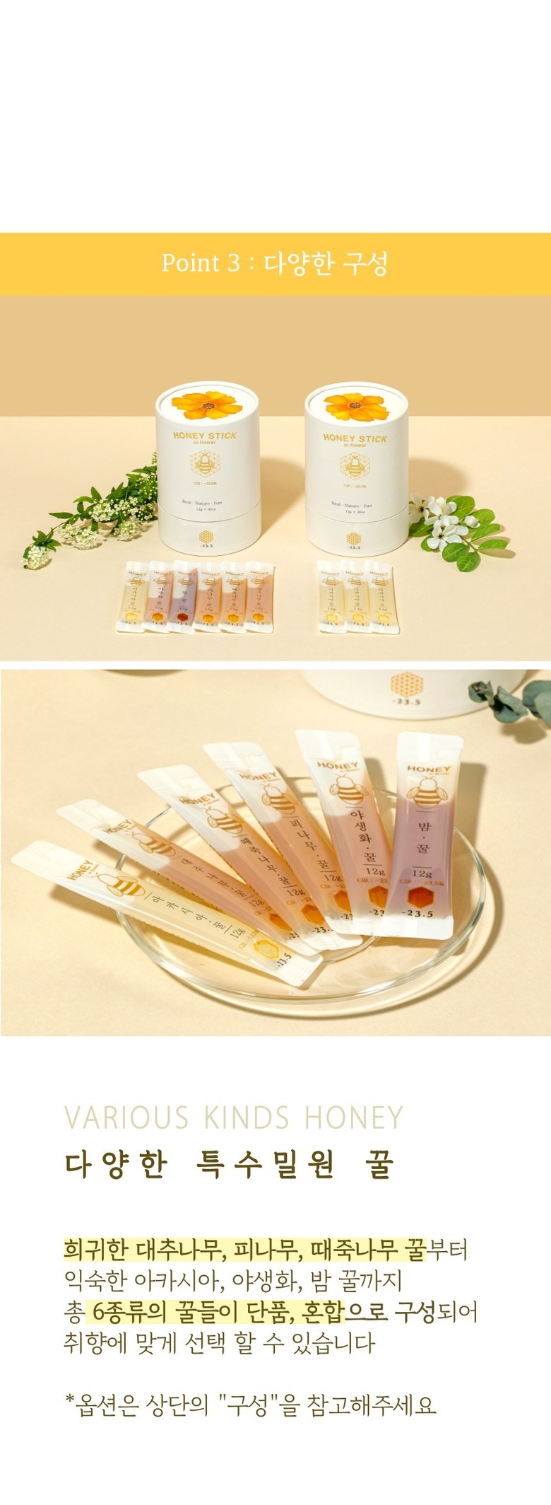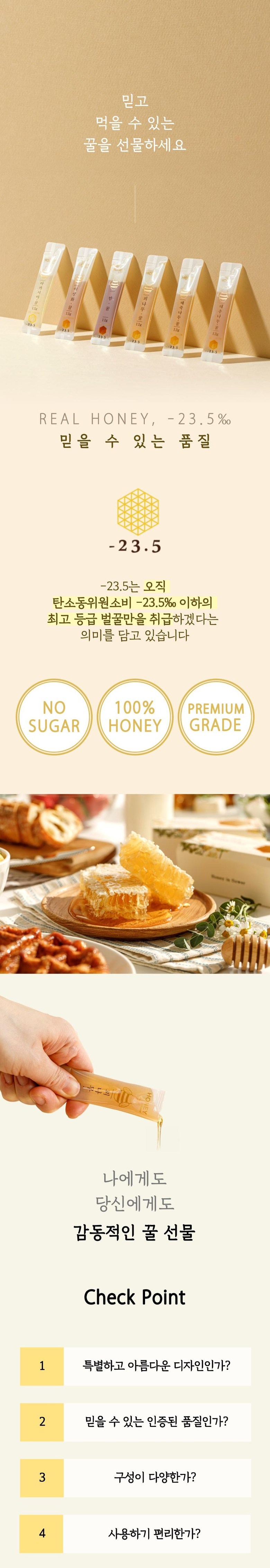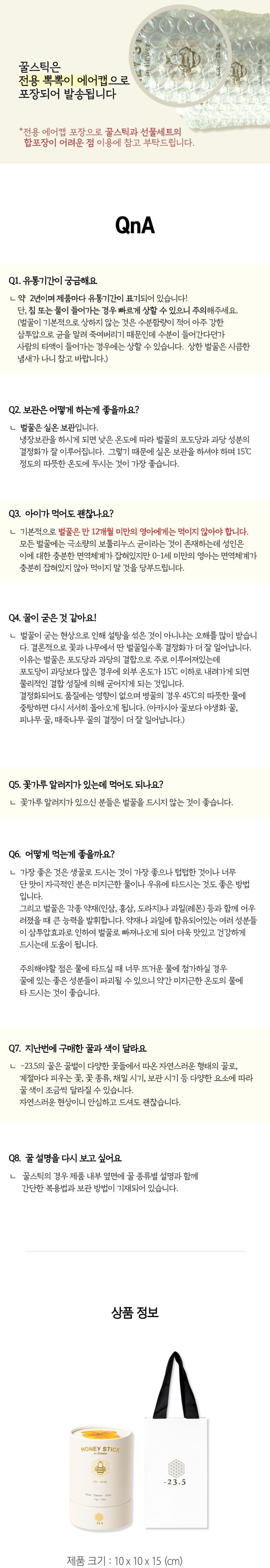 | 품목 또는 명칭 | -23.5 꿀스틱 30개입 | 포장단위별 내용물의 용량(중량),수량,크기 | 12g * 30포 (총 360g) |