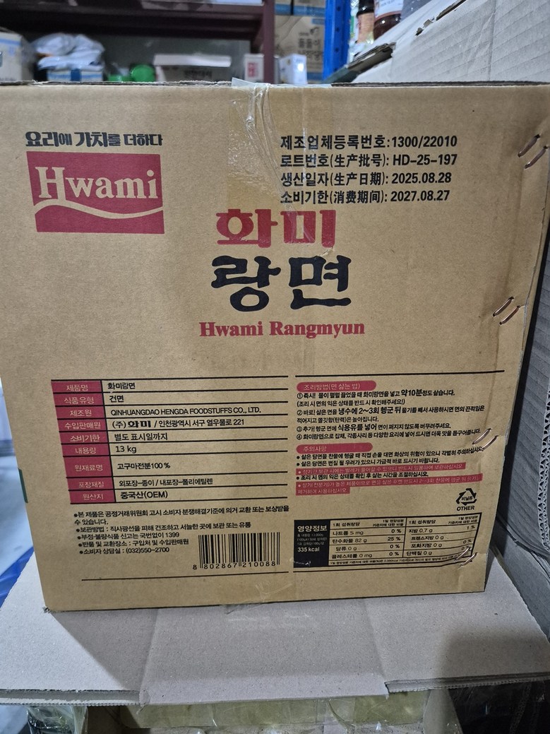 - 면 종류: 건면