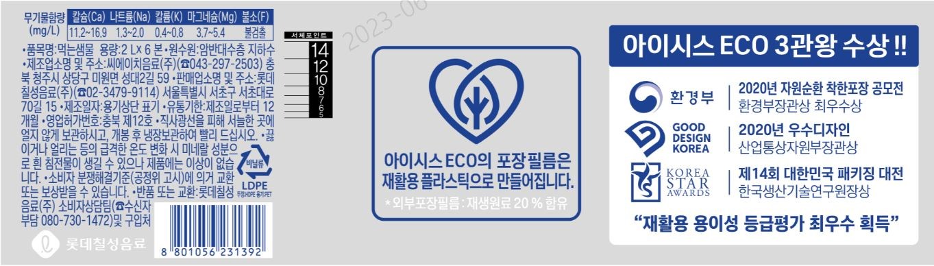 | 제품명 | 아이시스 8.0 무라벨 ECO | 식품의 유형 | 먹는샘물 |