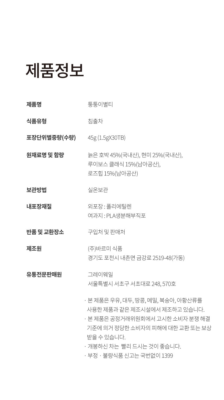 | 제품명 | 퉁퉁이별티 | 식품의 유형 | 상품 상세페이지 참조 |