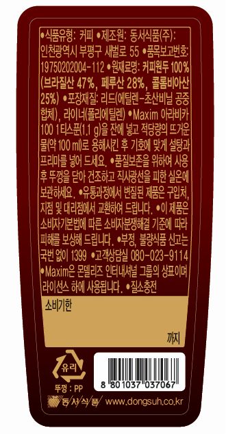| 제품명 | 컨텐츠 참조 | 식품의 유형 | 커피 |