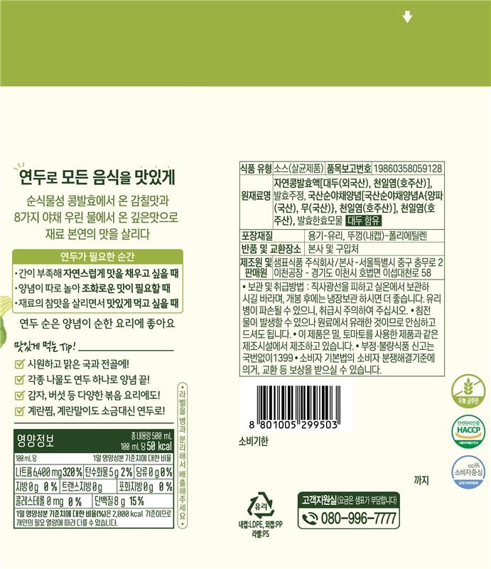 | 제품명 | 연두 순 | 식품의 유형 | 컨텐츠 참조 |