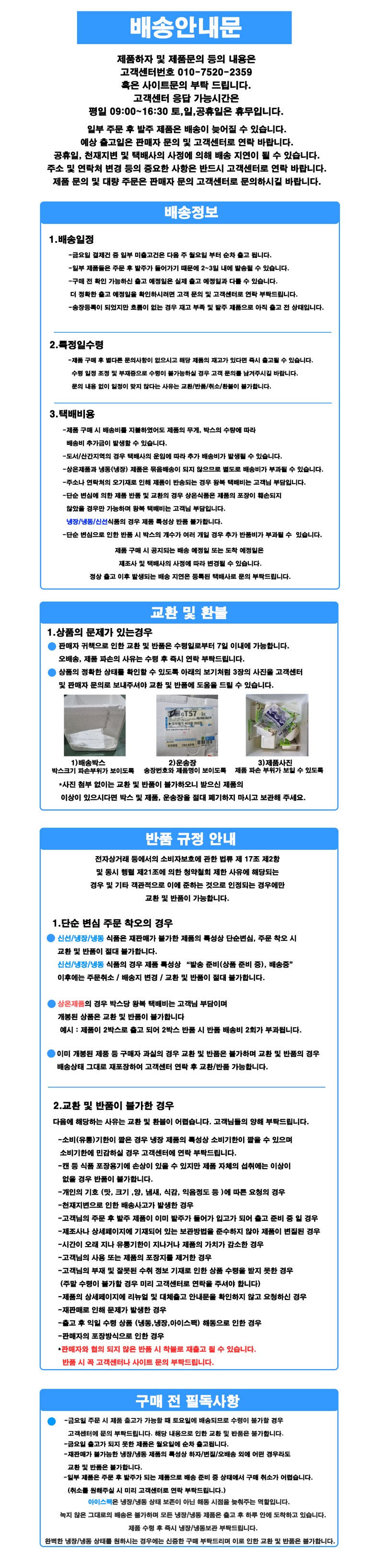 - ㆍ교환/반품에 관한 일반적인 사항은 판매자가 제시사항보다 관계법령이 우선합니다.