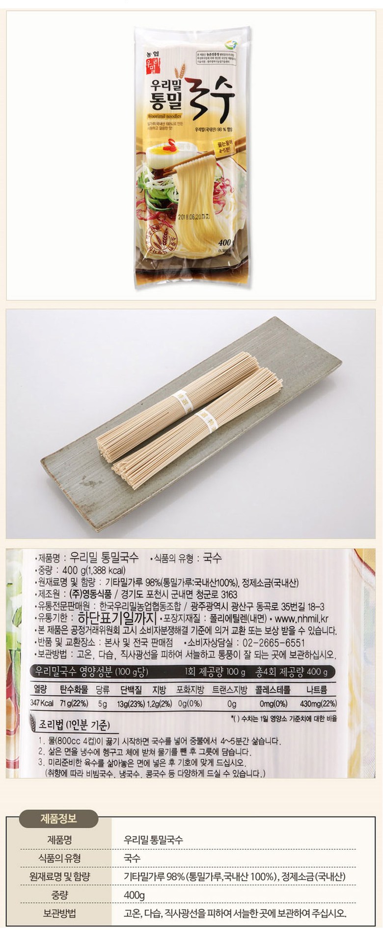 | 제품명 | 우리밀 통밀국수 | 식품의 유형 | 건면 / 국수 |