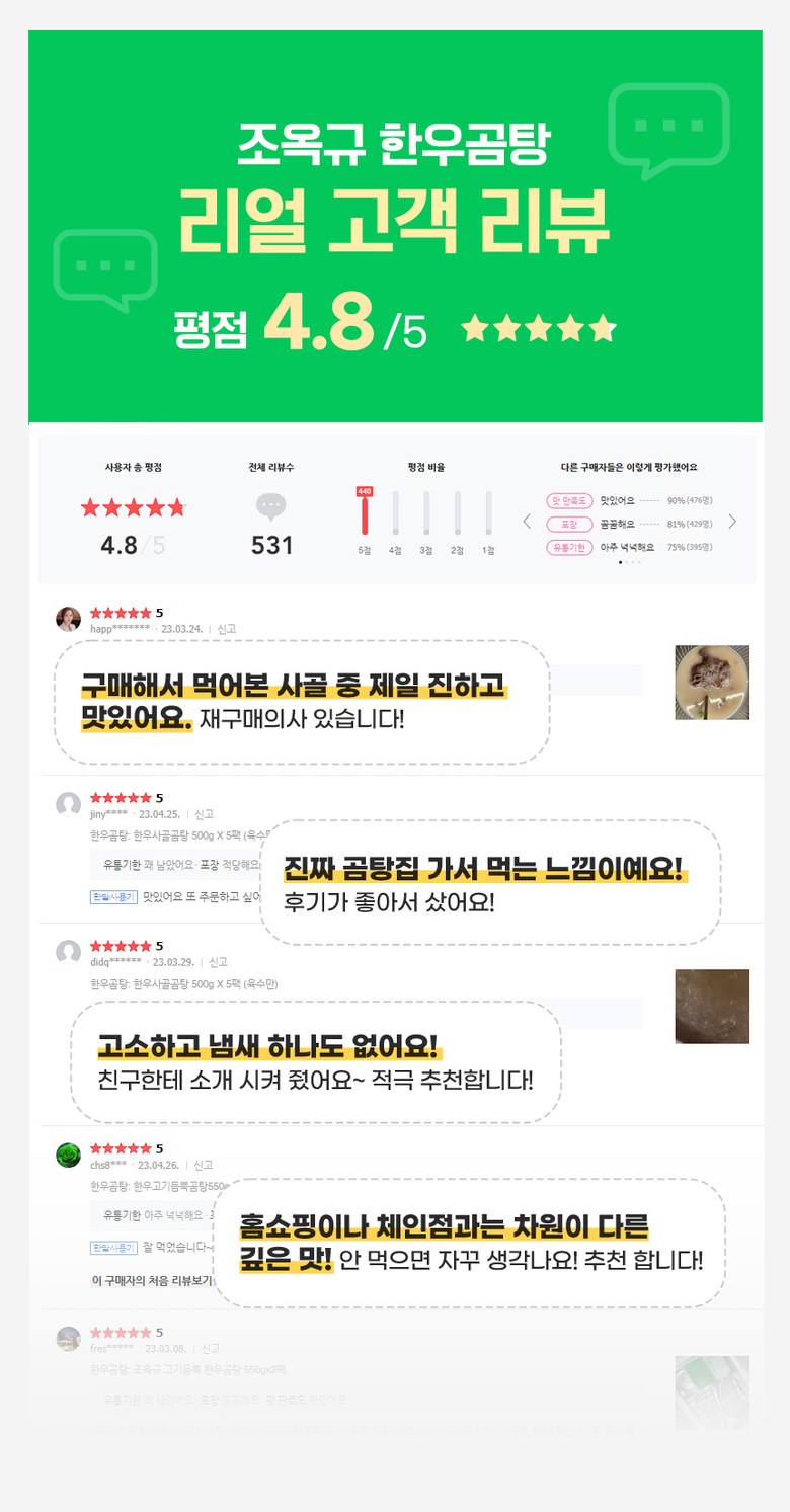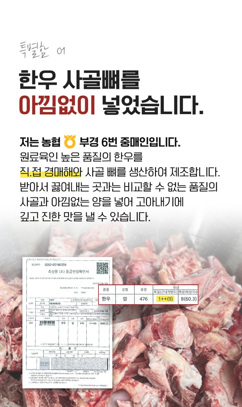 다른 첨가물 하나없이 오로지 한우 사골로만 고아낸 제대로 된 진짜 곰탕!