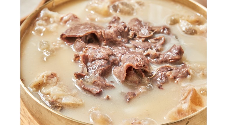 한우사골,뼈로 푹 끓여낸 한우사골 육수에 쫀득쫀득 한우스지, 부드러운 한우사태를 담았습니다.