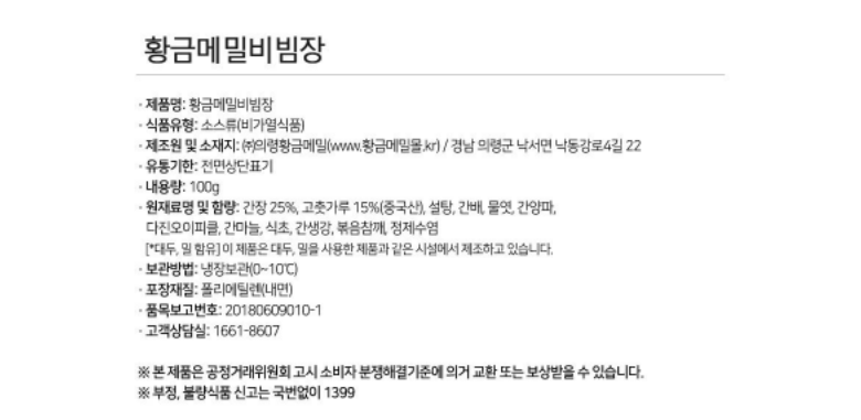 | 생산자 및 소재지 | 경남 의령군 낙서면 낙동강로4길 22 | 제조연월일, 소비기한 또는 품질유지기한 | 별도표기 |