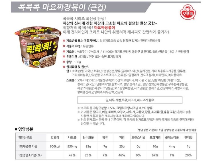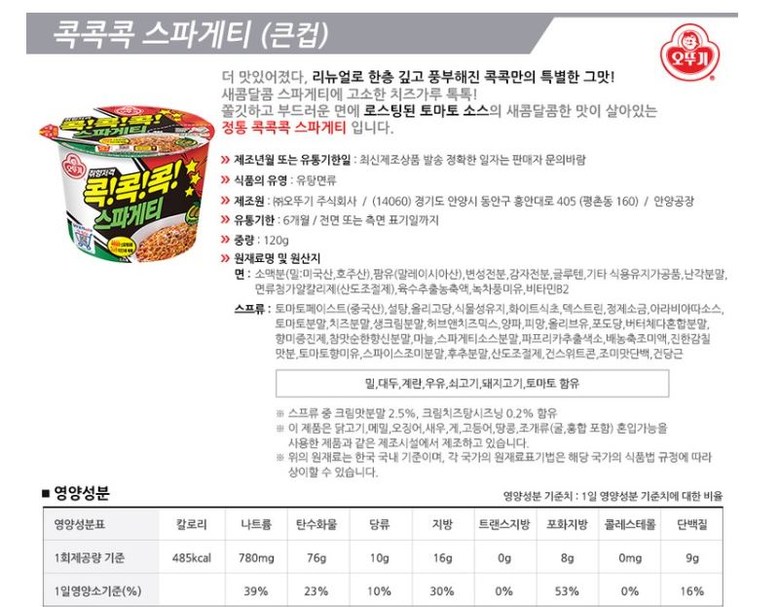| 제조연월일, 소비기한 또는 품질유지기한 | 상품 상세페이지 참조 | 세부 품목군별 표시사항 | 상품 상세페이지 참조 |