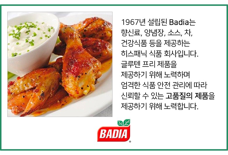 | 생산자 및 소재지 | Badia, US | 제조연월일, 소비기한 또는 품질유지기한 | 상세 내용 참조 |