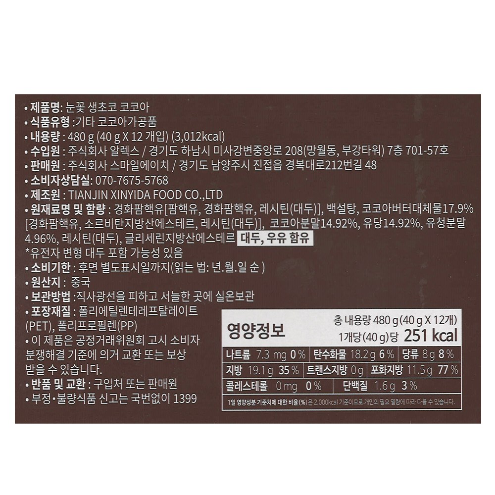 개당 중량: 40g × 12개