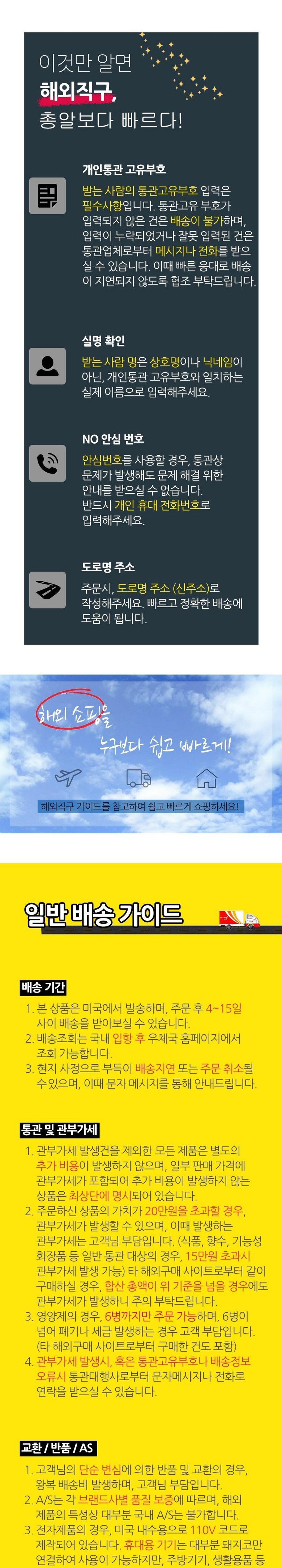| 배송방법 | 해외직구 | 배송비 | 10,000원 · 도서산간 추가 배송비 - 제주 지역: 3,000원 - 도서산간 지역: 3,000원 |