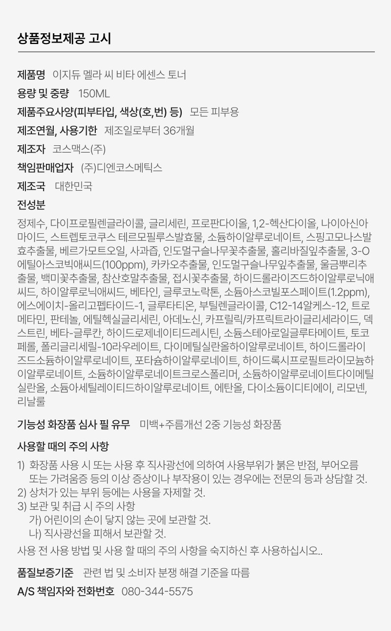 | 화장품제조업자, 화장품책임판매업자 및 맞춤형화장품판매업자 | 컨텐츠 참조 | 제조국 | 컨텐츠 참조 |