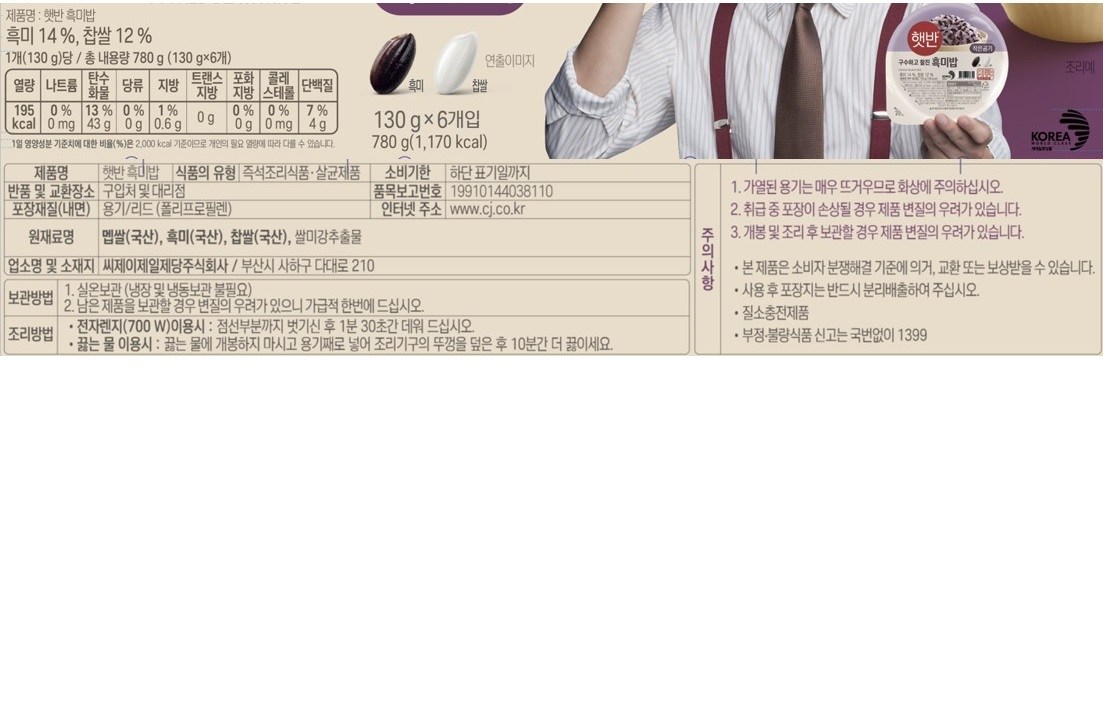 | 포장단위별 내용물의 용량(중량), 수량 | 130g x 12개 | 원재료명 및 함량 | 컨텐츠 참조 |