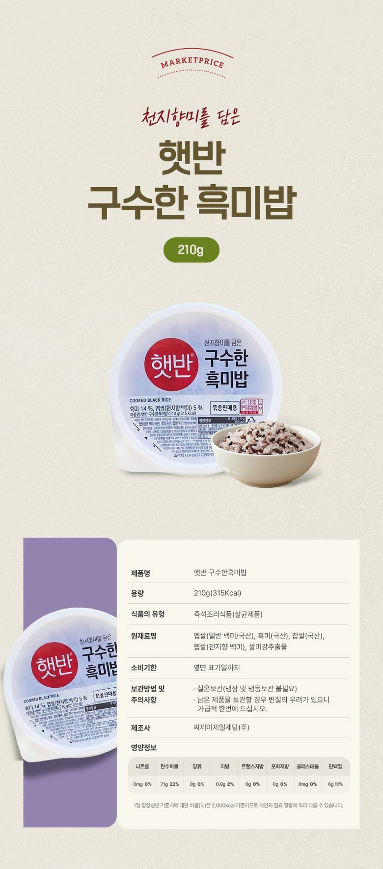 - 즉석밥 종류: 흑미밥