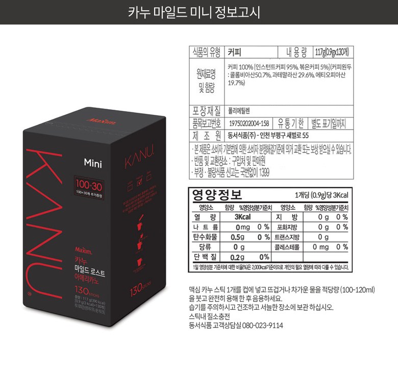 | 생산자 및 소재지 | 상품 상세페이지 참조 | 제조연월일, 소비기한 또는 품질유지기한 | 상품 상세페이지 참조 |
