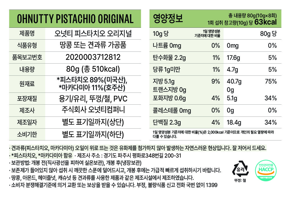 | 포장단위별 내용물의 용량(중량), 수량 | 80g*5개 | 원재료명 및 함량 | 컨텐츠 참조 |