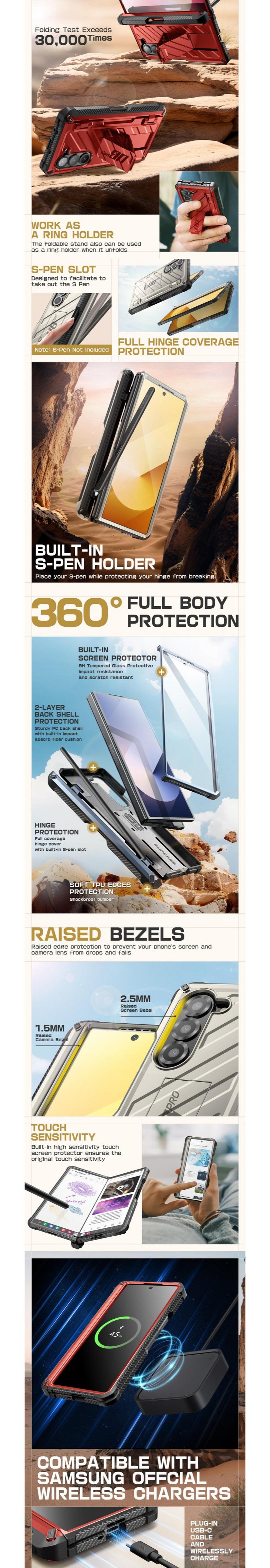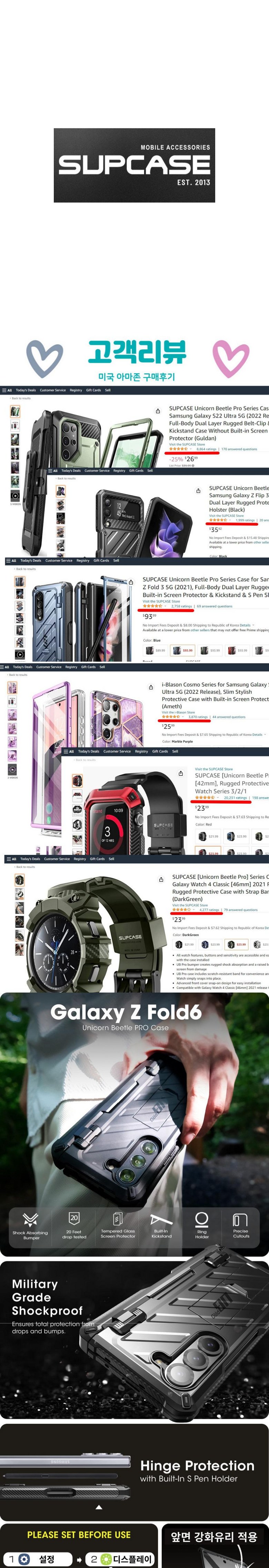 SUPCASE 유비프로 갤럭시 Z폴드6 러기드 힌지커버 스탠드 (펜수납 강화유리)